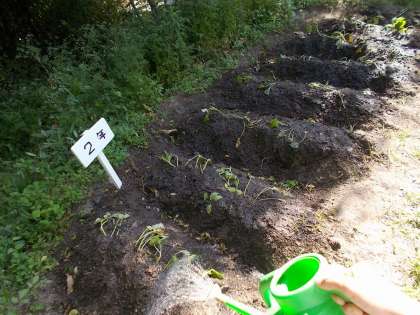 あさから さつまいもと ミニトマトに たっぷり 水を あげました。えいようを たくさん すいこんで 大きく みを つけて くれますように。せいちょうが とってもたのしみです。