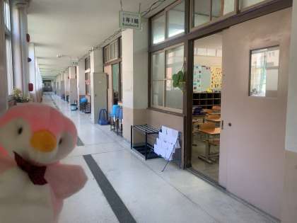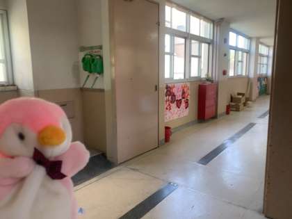 きょうも ぺんぎんの ぺんちゃんは がっこうを たんけん しました。