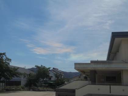ざんねんながら しゃしんでは すこし みにくいですが くもに いろが ついているのが わかるかな…?