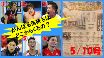6人とも2020年の東京オリンピックを目指していたアスリートです。オリンピックが来年に延期になってしまった今,いったいどんな気持ちで日々を過ごしているのでしょうか。ぜひ,5月13日に配布したジュニアタイムズ(京都新聞)の5/10号を読んでみましょう。頑張る気持ちをもう1度思い出さしてくれる,いいきっかけになると思います。