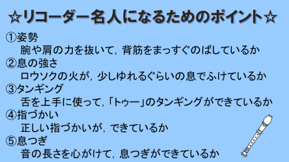 リコーダー名人になるためのポイントを確認しながら,練習をしてみよう!