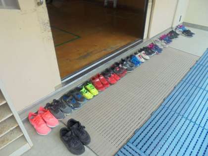 パワーアップ体操をするために教室から体育館へ移動。体育館の入口には,きれいに揃った靴が並んでいました。あたり前のことですが,やはりあたり前のことを言われなくても,あたり前にできる姿はかっこいいなと思います。