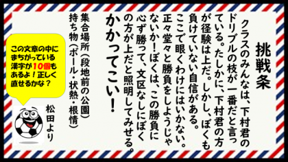 では,今回も問題です!間違っている漢字10個を正しく書き直してみましょう。全部5年生で学習した漢字です。ファイト!