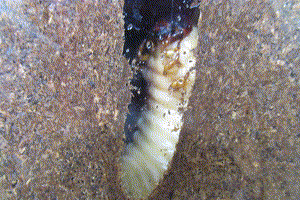 職員室前のカブトムシの幼虫が,部屋らしきものをつくっています。部屋の中で一生懸命動いていて,すごいなあと思います。成虫になることを応援しています。