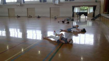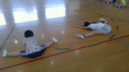 体の各部分を伸ばすような運動をしたのですが,自分たちが思っていたよりも,とても固くなっているようで,驚いている様子も見られました。