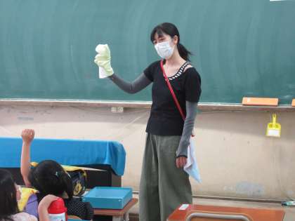 1年生は,入学して間もないのですが,分散登校のときには,その日の最後までよくがんばっています。帰る間際のとき,1年生のそれぞれの教室でおなじみのキャラクターがでてきました。ケロちゃん,ペンちゃん,ルカちゃんです。一日の最後ですが,1年生の子どもたちは,集中して話を聞き,キャラクターたちに手を挙げて質問をしていました。帰る間際まで楽しいこといっぱいの学校生活。最後まで集中して話を聞く姿勢が育っていくのですね。