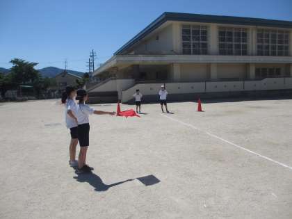 体育の学習で50mのタイムを計りました。とても暑い中でしたが,全力で走り抜けることができました。