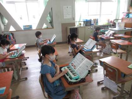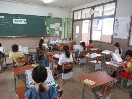 そして,けんばんハーモニカ。音は出さずに指の確認をしました。