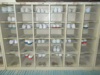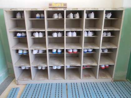 上靴がしっかりと上の段に入っていて,きれいに片付けられています。