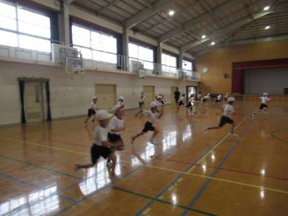 ジャンプしたり,回ったりしてから走る運動をしました。