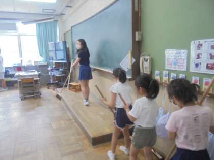 今週から掃除が始まりました。6年生は1年生の掃除の手伝いをしています。優しく掃除の仕方を教えてあげている姿は,さすが6年生だなと感じます。