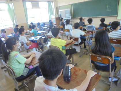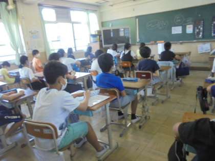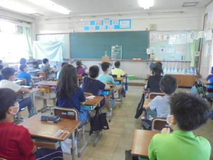 各教室で放送をつかっての児童朝会となりました。今月のこころの日の取組は,各学年の目標の紹介です。今日は,6年生の学年目標を紹介しました。