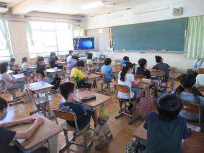 今年度初めての児童朝会を行いました。新型コロナウイルス感染防止のため,体育館に全校児童が集まるのをやめて,放送で行いました。「子どもの権利条約」のお話,「こころの日」の取組について話を聞きました。どのクラスも教室で席に座り,良い姿勢で静かに話を聞き,とても立派でした。