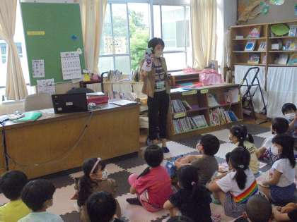 先日の学校探検では前を通るだけだった図書館に行きました。図書館では新納先生と「ときわん」というキャラクターが使い方を案内してくれました。今日は1冊の本を借りて,教室で少し読みました。今はまだ,図書館でゆっくり本を読むことはできませんが,図書館での読書も楽しみたいです。