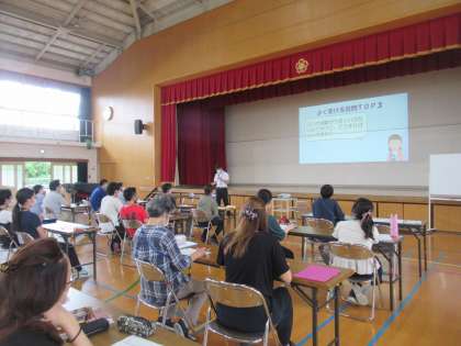 教職員で,指導力・授業力の向上をめざし,研修を行いました。密をさけ,換気をして研修をするため,体育館で行いました。理科の専門の先生に来ていただき,指導について,理科の特性について学びました。今日の学びを,子どもたちの指導に生かしていきます。