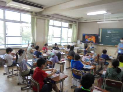 教材を使いながら,電池のつなぎ方,電流の働きについて学習をしていきます。