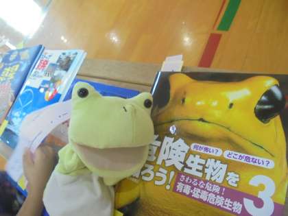 けろちゃんも一緒に本を見ていると,お友だちを発見!危険な生き物らしいですが…。