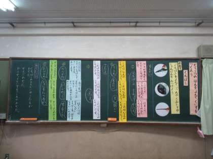 4年生も,1年生も,国語の説明的文章の「構成」について考える学習をしました。4年生は,文章全体のどこで「はじめ・中・おわり」のまとまりになっているのかを,1年生は,文章の「組み立て」を「どこに何が書かれているか」で考えました。1年生は,学校が始まって間もない時期なのに,振返りの場でわかったことや感想など,自分の言葉で書くことができました。