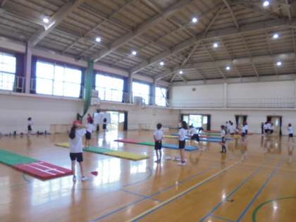 マット運動を行っています。学習の流れを十分に理解しながら,自分のめあてをもって取り組むことができていました。