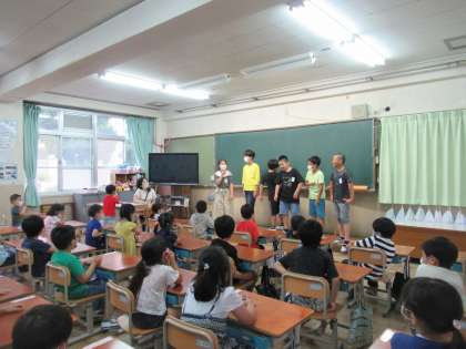 そうじが早く終わったので,6年生に小学生生活の先輩としてインタビューをしました。「1年生のとき,どんな1年生だったのですか?」と聞くと「やんちゃでした。」という返事が返ってきました。「ぼくといっしょ!」とにこにことつぶやく1年生がいました。楽しいふれあいのひとときでした。
