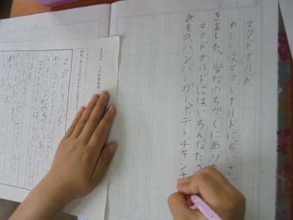 構成を考えて,みつけたことを文章に表しました。子どもたちは,メモのワークシートをもとにノートに丁寧に清書していきました。