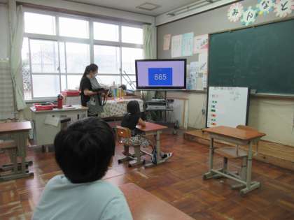 コンピュータのソフトの「フラッシュ暗算」で数字を読みました。パッパッと変わる数字を次々と読みました。
