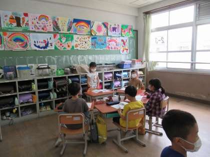自分で考えたほしい道具について,グループで交流しました。発表者に対して,聞き手がいきいきと進んで質問をしたり感想を言ったりしました。