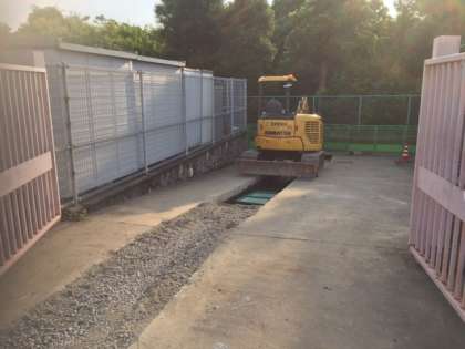 夏休み前から始まった災害用マンホールトイレ工事が,夏休み中にも行われていました。