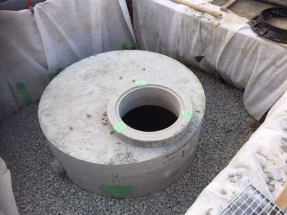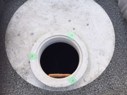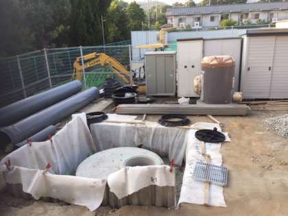 人がすっぽりと入るようなタンクが,体育館北側の地中に埋められました。