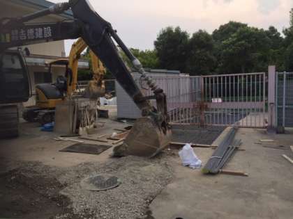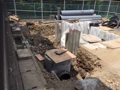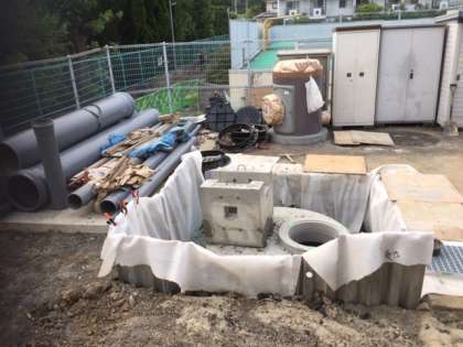 地中に埋められた雨水タンクから,下水管までの配管工事をされていました。