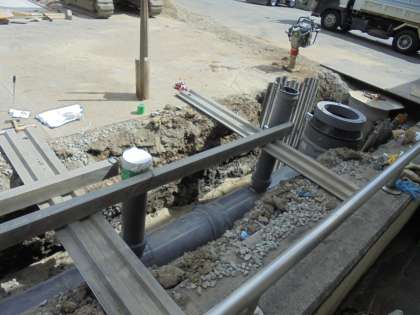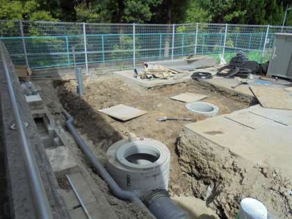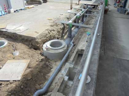 水がうまく流れるように傾斜を考えて,配管工事をされていました。
