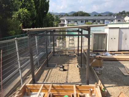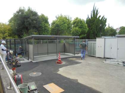 配管工事が終了し,埋立が行われ,ごみ置き場も新しくなりました。ごみ置き場の隣に新しく汲み上げポンプが設置されました。