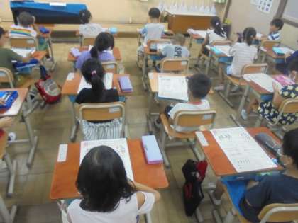 今日は,教室での始業式と大そうじを終え,3時間目には1学期の復習をしました。明日からは2学期の学習が始まります。気持ちや生活リズムを学校モードに切りかえて,学習に臨んでほしいと思います。