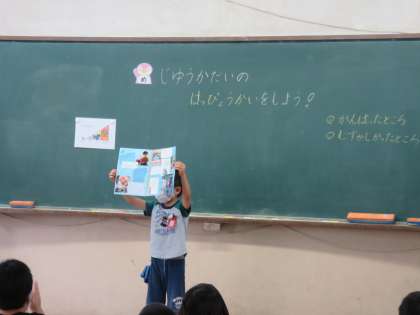 小学校初めての夏休みに作った自由課題の発表会をしました。