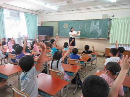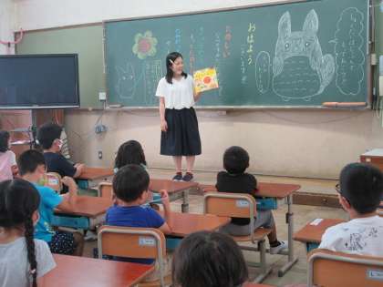 「めん たべよう!」の絵本の読み聞かせをしました。たくさん出てくる麺類のメニュー中で,好きかどうかを聞きながら読み進めました。