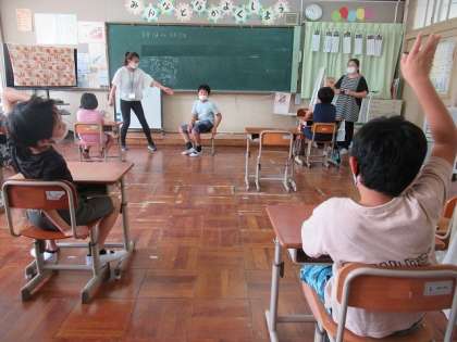 夏休みの思い出を発表しました。発表の内容を聞いて,お互いに質問をして,交流しました。