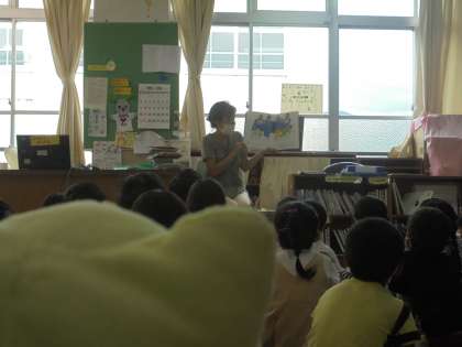 司書の新納先生には,「がっこうだって どきどきしてる」という本を読み聞かせしていただきました。