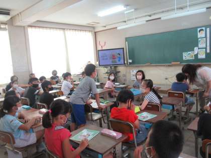 家族とお客さんの違いから,家族の一員としてできることを話し合い,考えました。