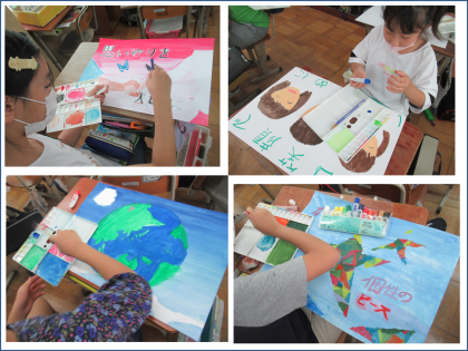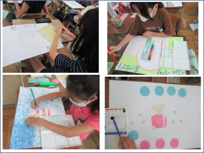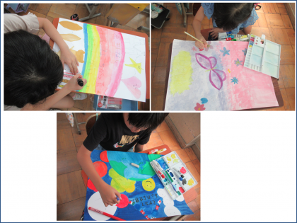 工夫した構図や図案,美しい色を重ねるなど,がんばって描いています。