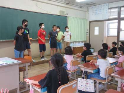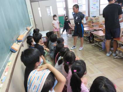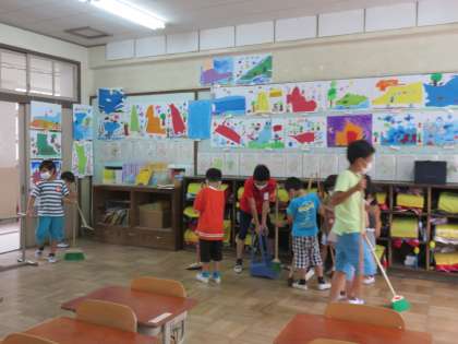 1年生の教室では,6年生が掃除を手伝ってくれています!