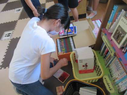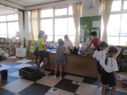 今日は図書館が開く日です。図書委員会の子どもたちは,がんばって仕事をしてました。本を借りに来る子どもは,うれしそうです。新刊が入り,ハンコを押している図書委員の子どもの「やった。この本入ってうれしい。」というつぶやきが聞こえてきました。