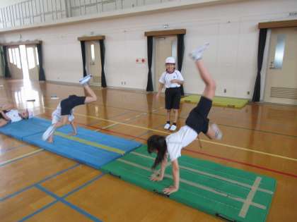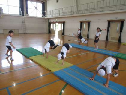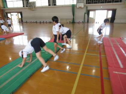 マット運動も5時間を終え,少しずつできる技が増えてきました。