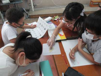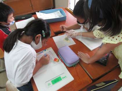 八つ橋を知らない子も多かったので,まずは実物を見て触って,考えました。
