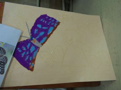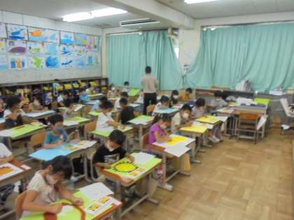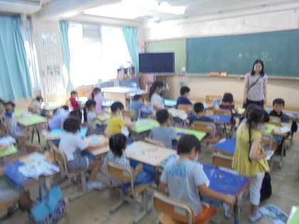 子どもたちは,画用紙と向き合って,楽しくクレパスで生き物などを思い思いに描いていました。