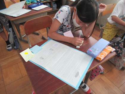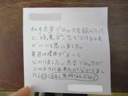 みんなが過ごしやすい町について,調べたり考えたりして文章にまとめました。友達のまとめを見て,感想を付箋紙に書いて伝え合う活動をしました。