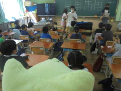 今日は初めてのたてわり活動がありました。違う学年のお兄さんやお姉さんとグループを作って,交流していきます。今日は自己紹介をする活動をしましたが,帰ってきた子どもたちは「ドキドキしたよ」「楽しかったよ!」とニコニコ笑顔で報告してくれました。
