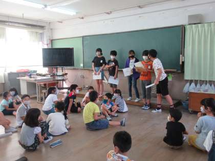 今年度初めてのたてわりグループ活動を行いました。6年生がとても立派に会をすすめていて,すばらしかったです。