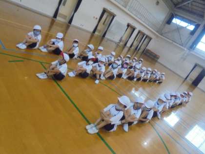 今日はあいにくの雨模様でしたが,体育館でおきかえリレーの作戦会議をしました。