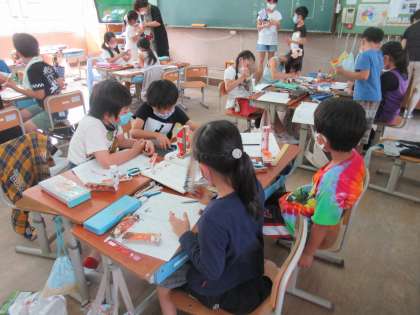 おもちゃの作り方について説明された文章を読んで,実際におもちゃを作りました。分かりやすかったところや,何度も読み返したところに着目して読みました。グループで協力して楽しく作りました。