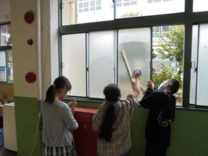 少し蜘蛛の巣がはっている窓をきれいにふいてくれました。それぞれの場所でしっかりと子どもたちは掃除を頑張っています。